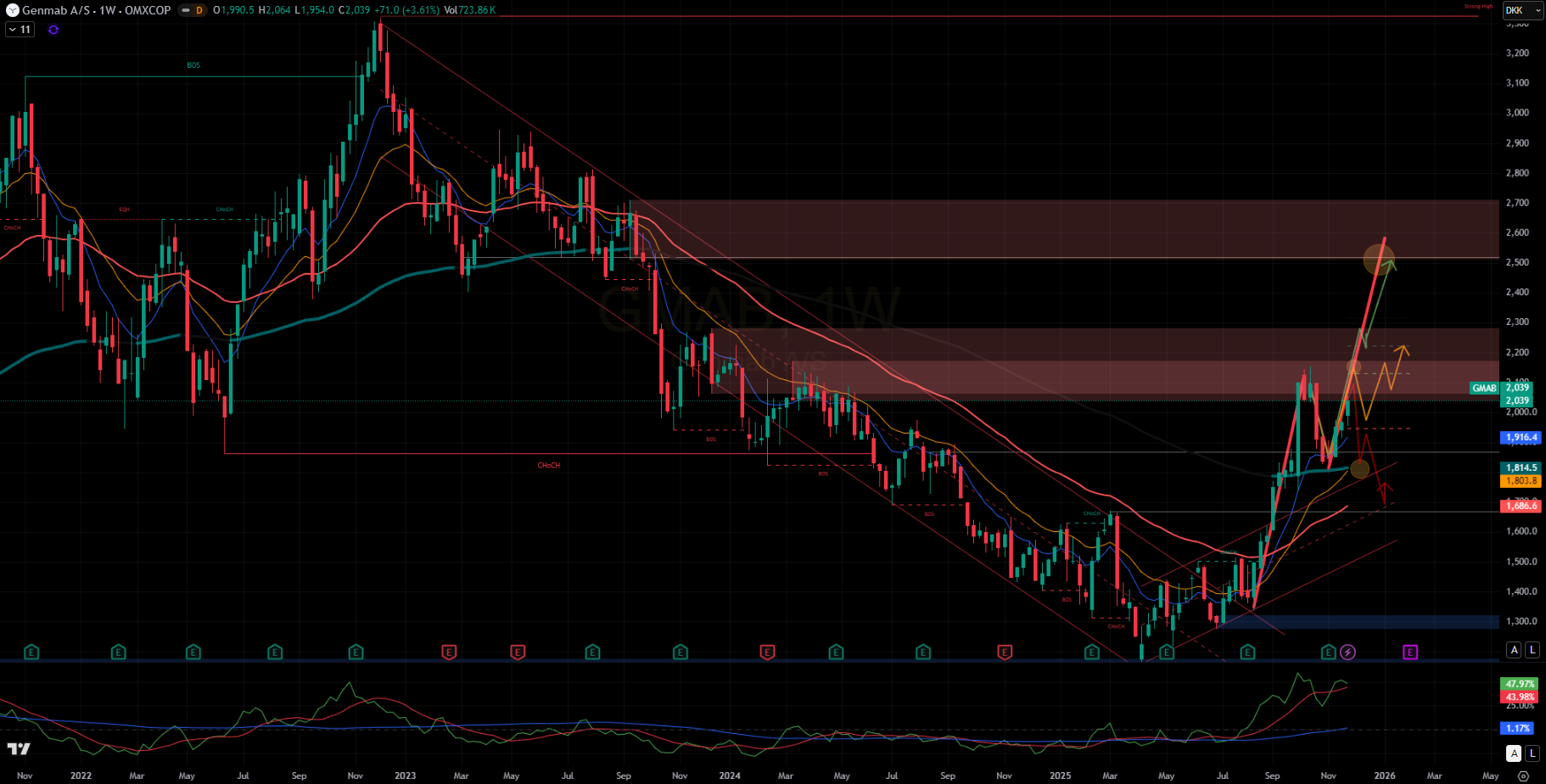 Overordnet viser Genmab i øjeblikket et positivt momentum, og aktien er værd at holde øje med i forhold til nye købsmuligheder.